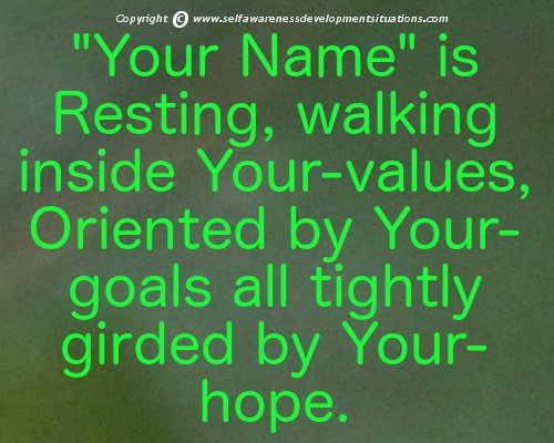 Note: Replace The Words "Your Name", "Your", "You" with Your Actual Name and Then Verbalize It!Your Next Newsletter is How To Walk Inside Your-Values Based On Your-GoalsLook forward to more on Awareness Situation's Series on your awareness consciousness of personal qualities chart - The PQ Chart. Continue Your Self Awareness DevelopmentLearn Some More "How Tos" In Our New Self-Leadership CourseSelf-Leadership By Your Own Precision Words for Beginner'sThis "how-to" stuff is a snippet from our unique course on self-leadership by your own precision words. You have just read some of our solutions to the ever-present challenge for a fresher and more advanced consciousness in today's world. So take a preview of the course by visiting Self-Leadership By Your Own Precision Words for Beginner's at Udemy. My Awareness Situations BlogIf You Want to Know What's New!Awareness situations periodically releases articles on self awareness development situations focusing on how you can overcome in any situation you find yourself in.