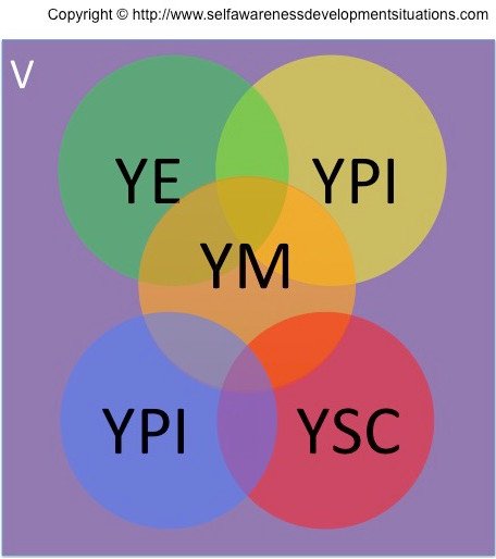 These spheres all intersect with one personal quality, your-motives. Using your-motives as the connector, have a look at the intersection, carefully, on the interconnected venn diagrams. Yourmotives-centered-awareness is reflected in the dimensions you can flow through. Here are your five dimensions, with YPI showing more than once in some dimensions. 1) YSC, YM, YE 2) YPI, YM, YPI 3) YV, YH, YSC 4) YPI, YM, YPI 5) YPI, YSC, YM, YPI, YE Notice that YM is always part of any of your flows - the center is always included. But also notice a new dimension. YPI appears in both venn diagrams - double dose, which has an overload of your-personal-identity on your-motives. So your-motives need your-identity, your-emotions, your-personal-identity, and your-self-control, all this is in your mind - growing your mental strength - to work in a balance manner. Now, Imagine How Beneficial This Awareness (In Real-Time) is For YouVerbalize Yourmotives-centered-awareness With Another Option Like...