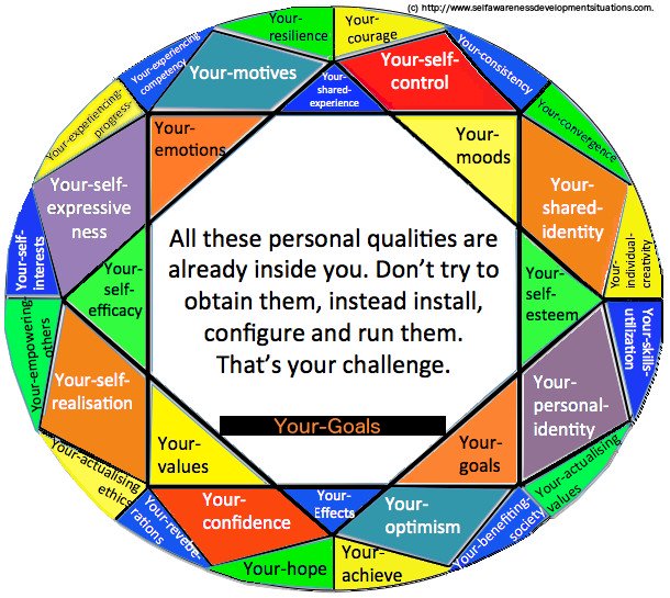 Once you have your personal statement of purpose and your-identity sorted, which can range from one word, a phrase, a sentence, a paragraph or a whole page, you could decide to start with just one among many personal self-awareness development areas for your goals. For example: physical, financial, social, or career. Don't overwhelm yourself. Start by choosing one area you are most interested in. I started with my physical goals because I was more comfortable here than in any other area of my life. Life is an amazing force. You yourself will wonder how you got to 10 areas of your life and in each each having done so much. When you are used to setting and achieving simple and straight forward goals in one area, the next area of your life automatically emerges as if it was being called up by the area you are working on right now. And your awareness development continues unabated.